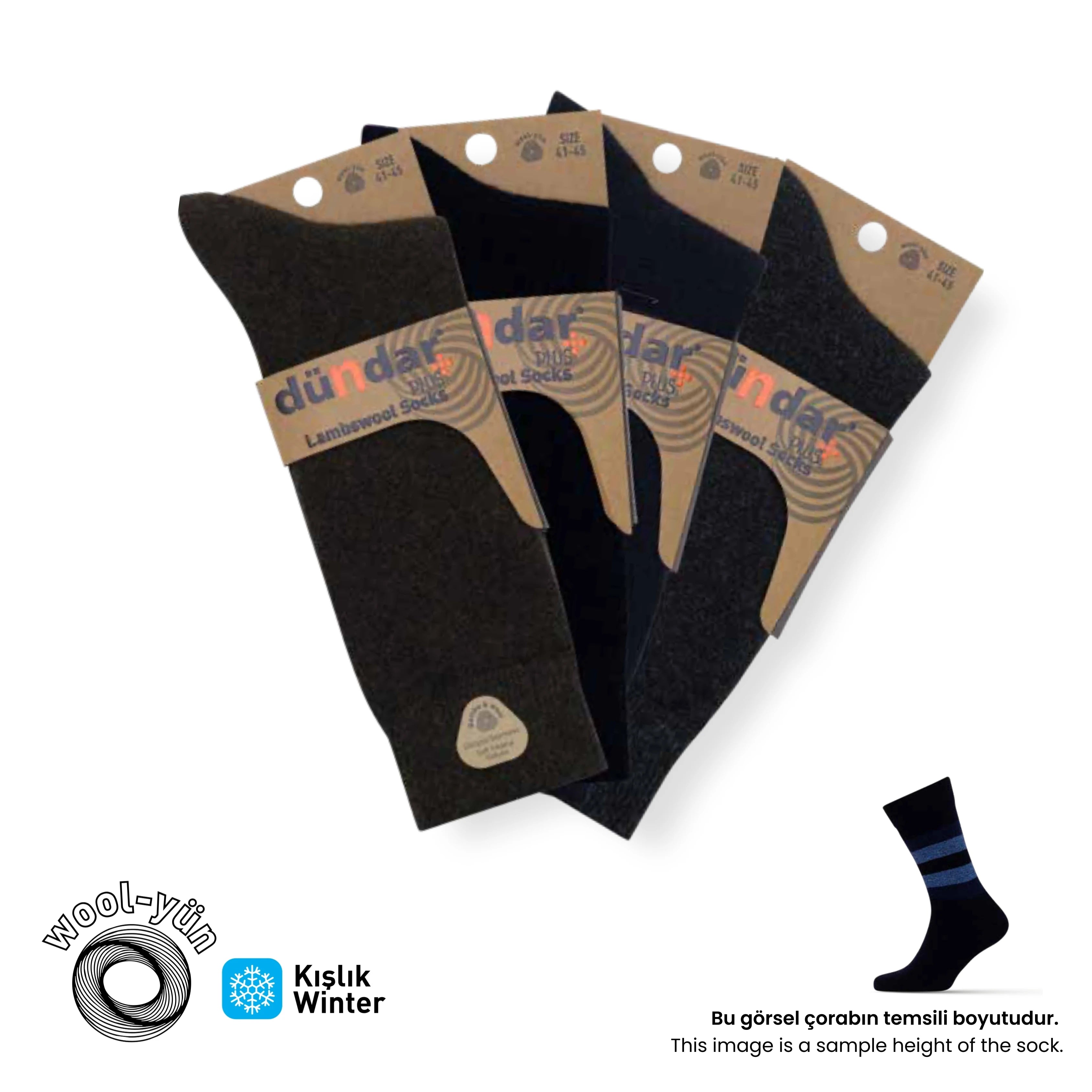 5909 Dündar Plus Erkek Lambswool Yün Çorap - 12'li Paket