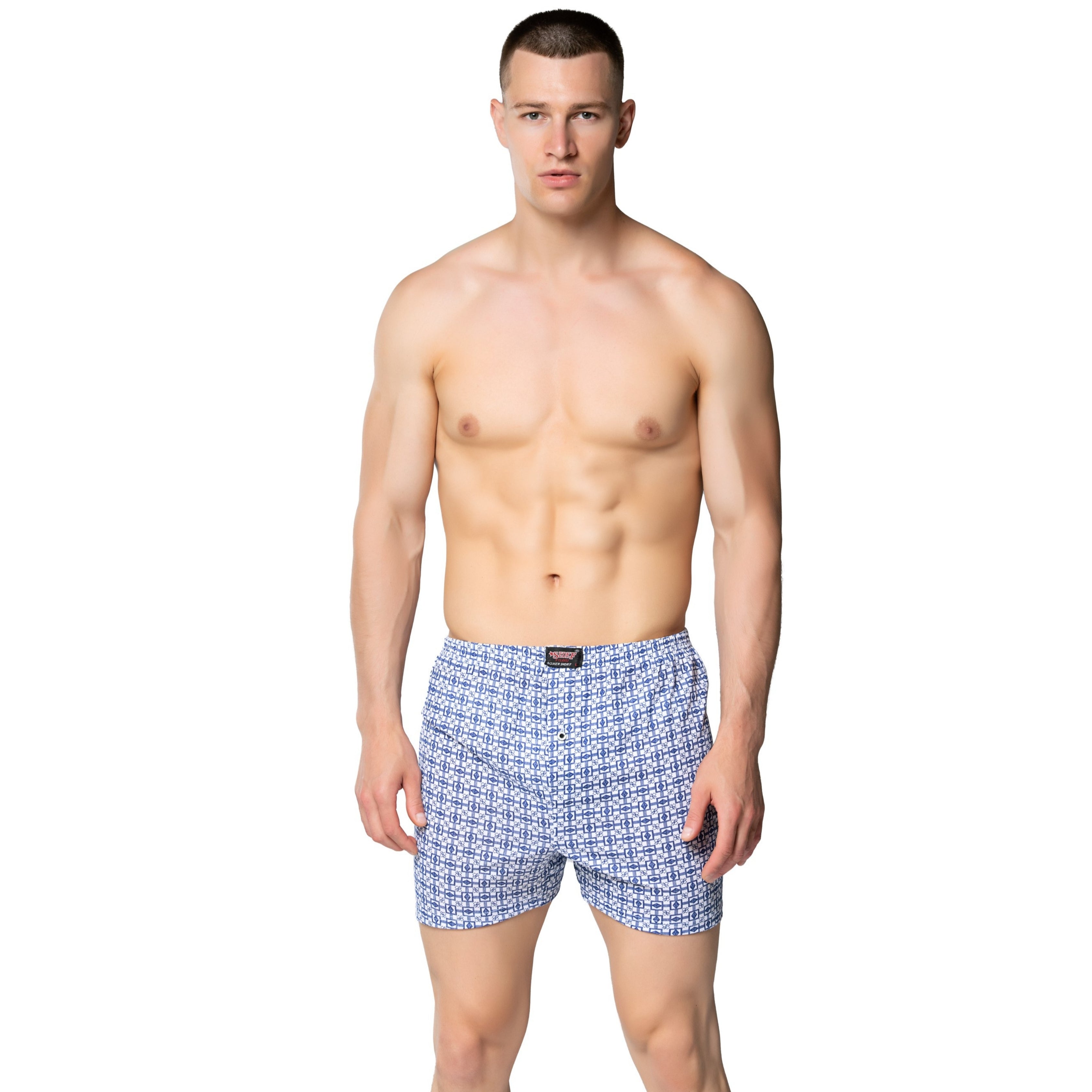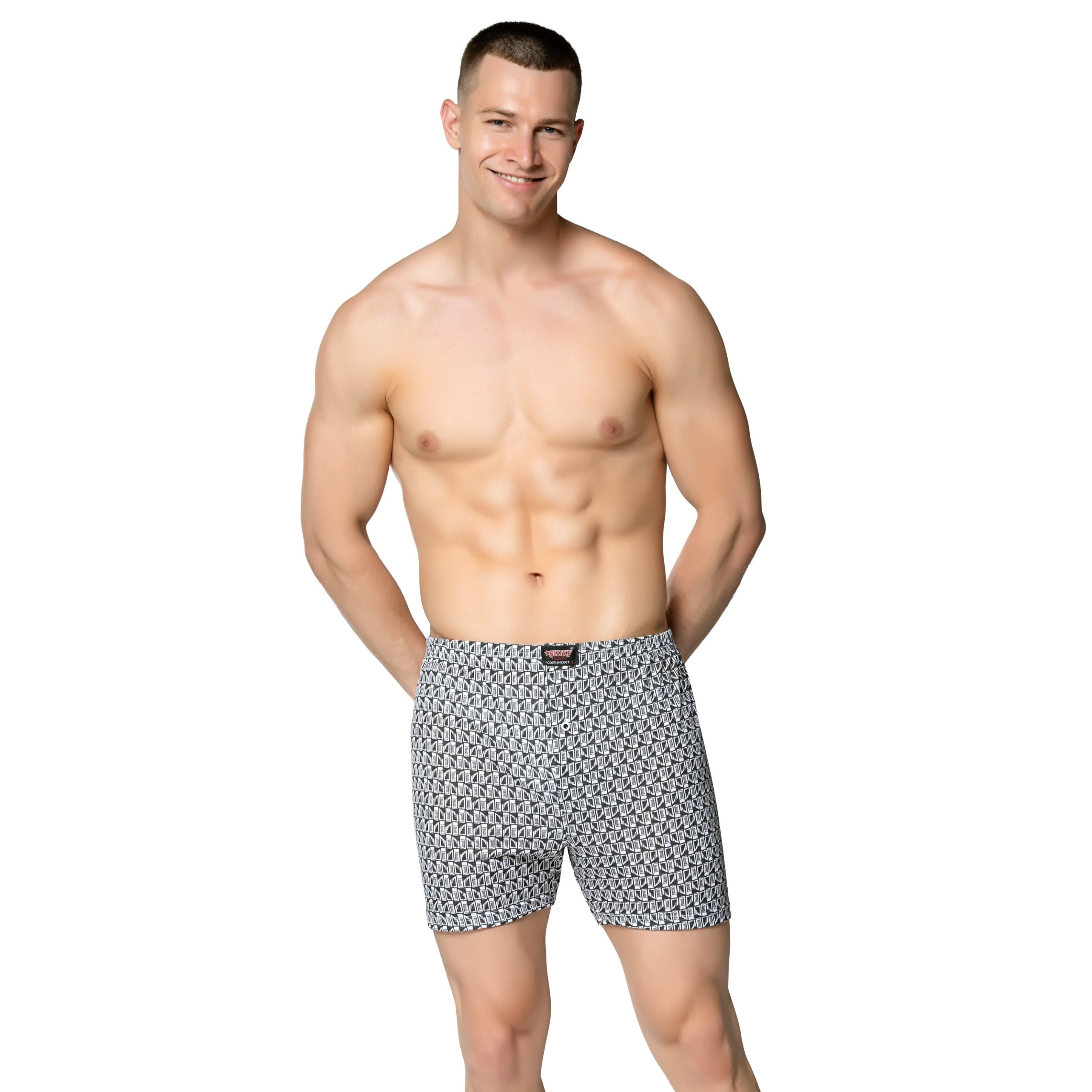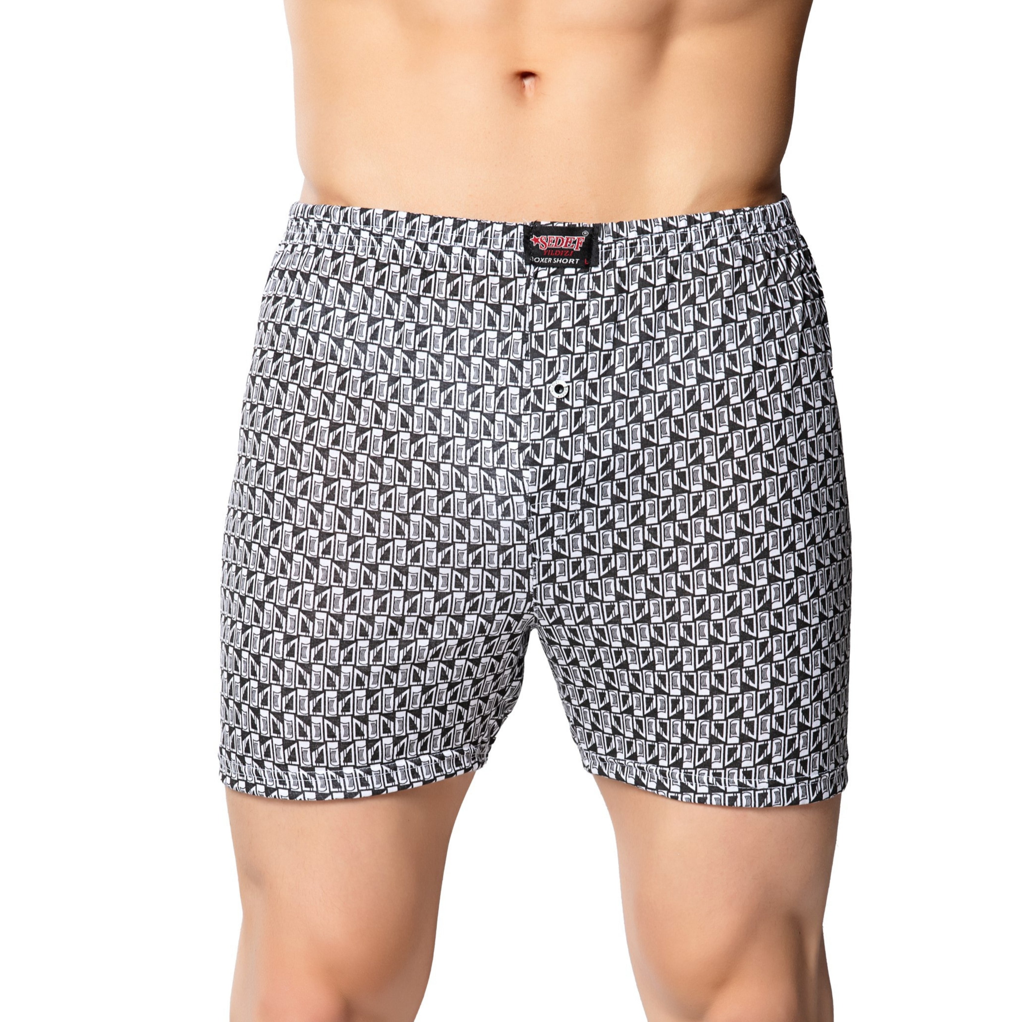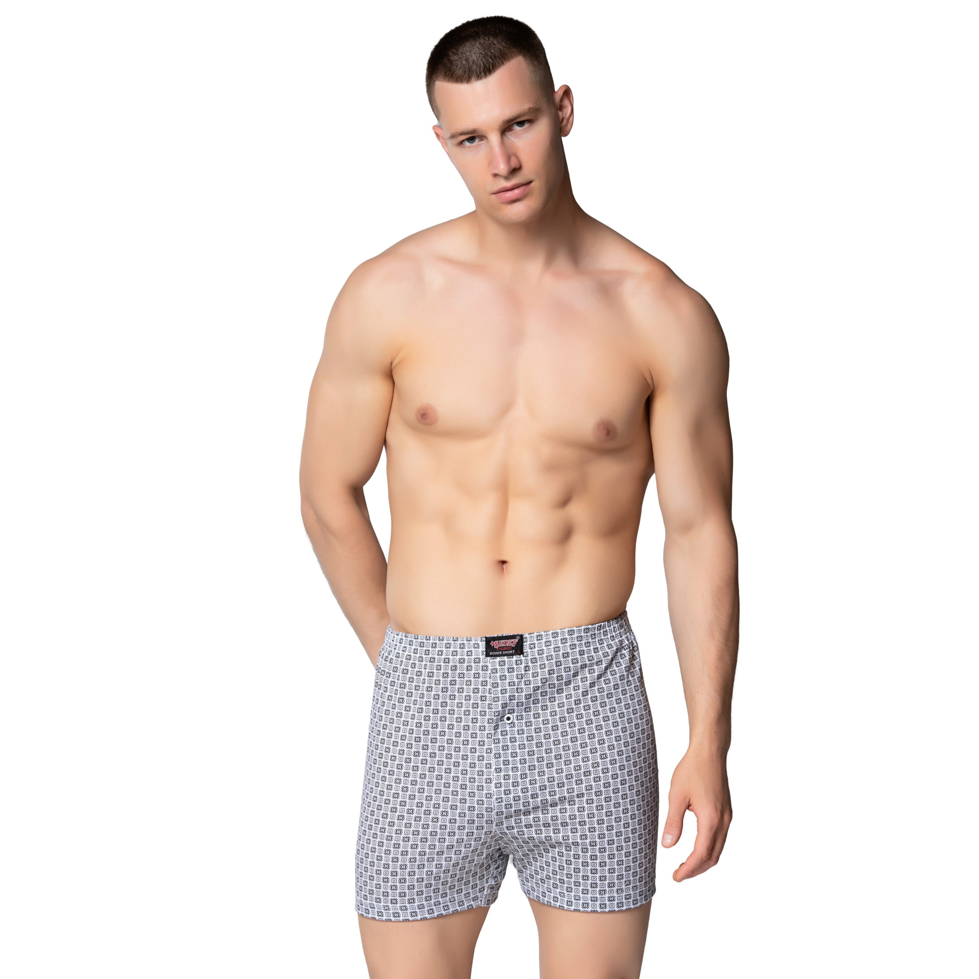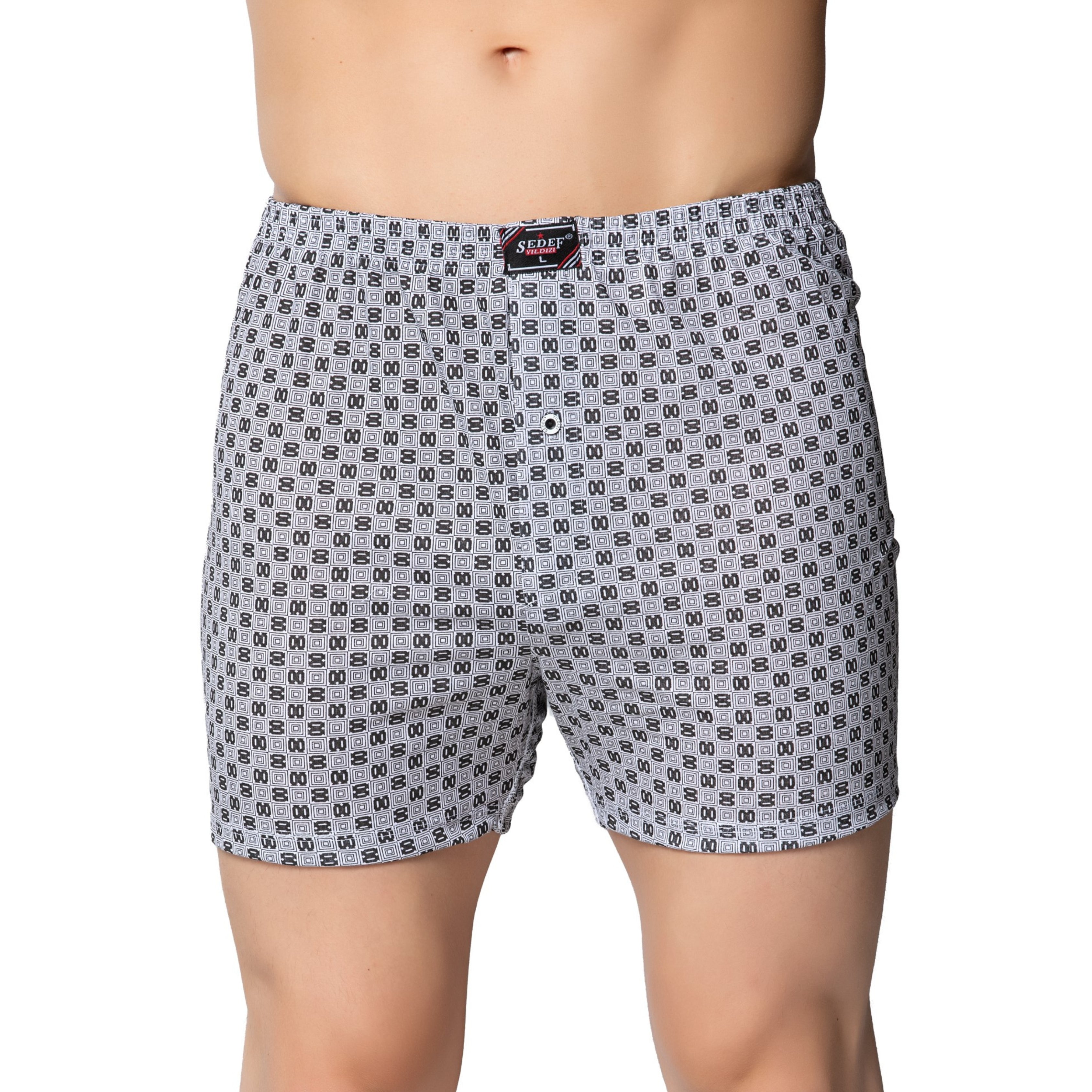 1012 Erkek Penye Empirme Desenli Boxer - Tekli Paket
